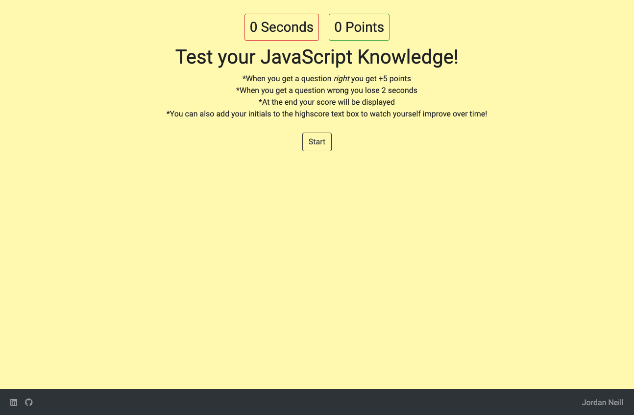 I used JavaScript to make a fun quiz. Utilizing a points, timer system as well as localStorage.